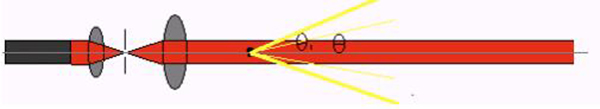 米氏散射理論表明,當(dāng)光束遇到顆粒阻擋時,一部分光將發(fā)生散射現(xiàn)象,散射光的傳播方向?qū)⑴c主光束的傳播方向形成一個夾角θ,θ角的大小與顆粒的大小有關(guān),顆粒越大,產(chǎn)生的散射光的θ角就越小;顆粒越小,產(chǎn)生的散射光的θ角就越大。即小角度(θ)的散射光是有大顆粒引起的;大角度(θ1)的散射光是由小顆粒引起的,如下圖所示。進一步研究表明,散射光的強度代表該粒徑顆粒的數(shù)量。這樣,測量不同角度上的散射光的強度,就可以得到樣品的粒度分布了。
